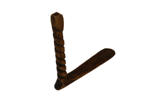 деталь ткацкого стана, в виде фигурного столбика-каркаса из дерева, с вращающимся колесиком в нижней части
