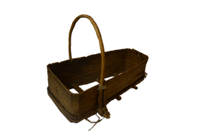 предмет имеет 2 деревянные рейки в основе, которые параллельны друг другу; между ними натянуты хлопчатобумажные нити, переплетенные между собой в середине